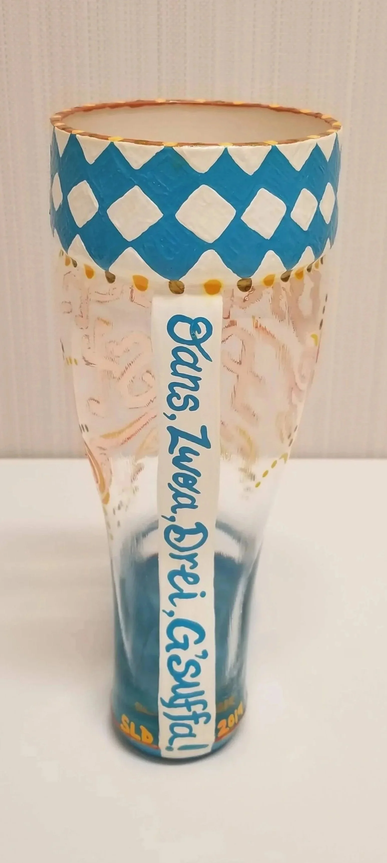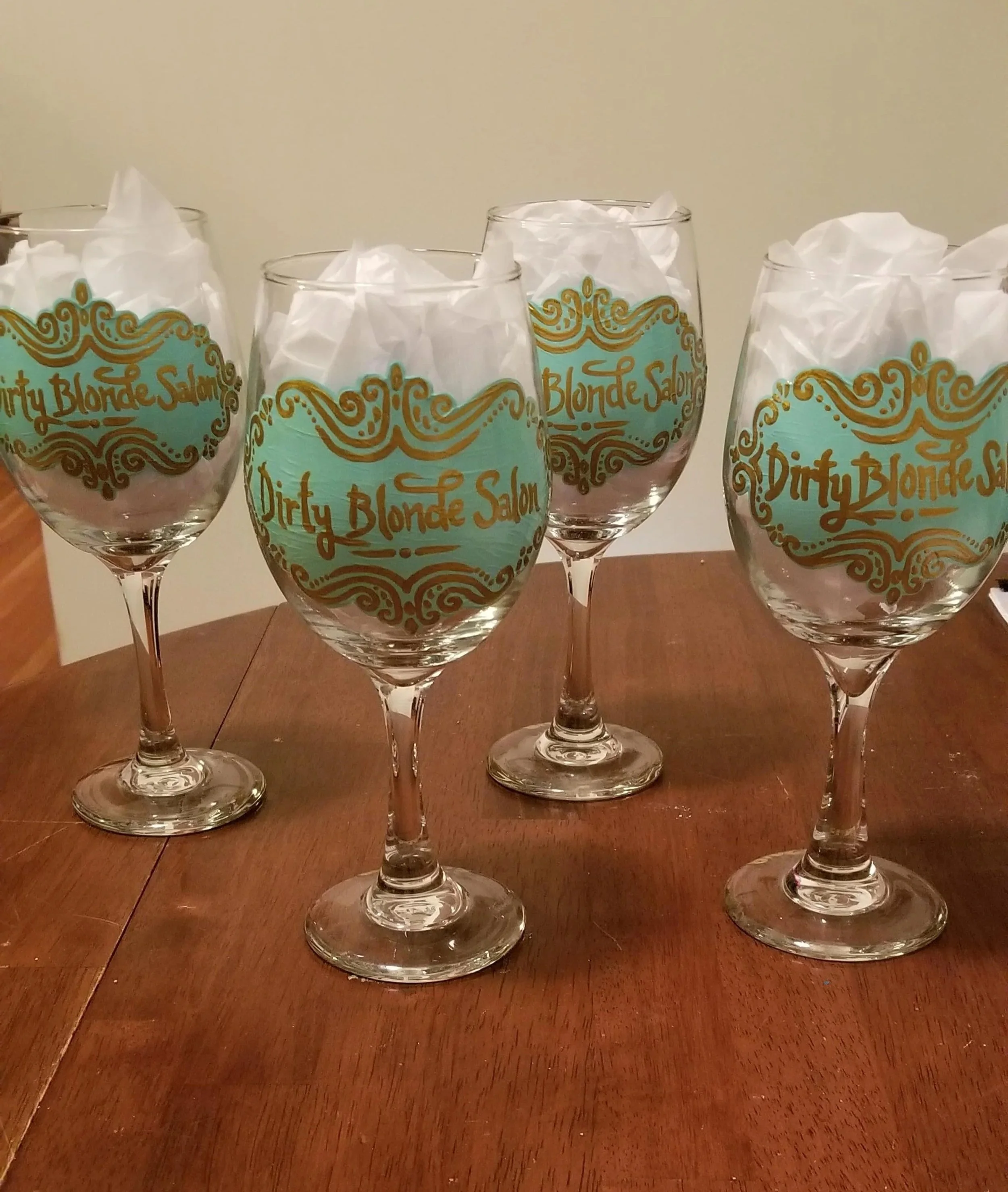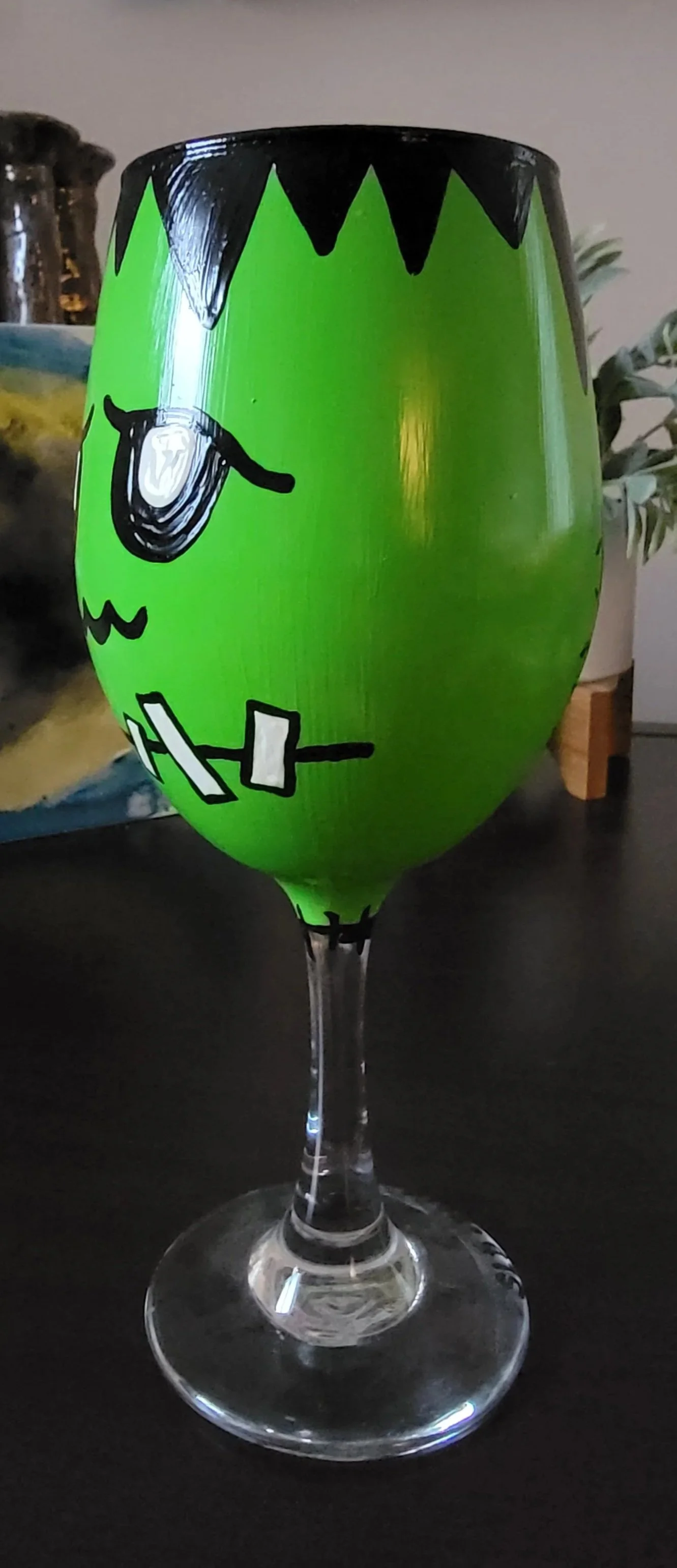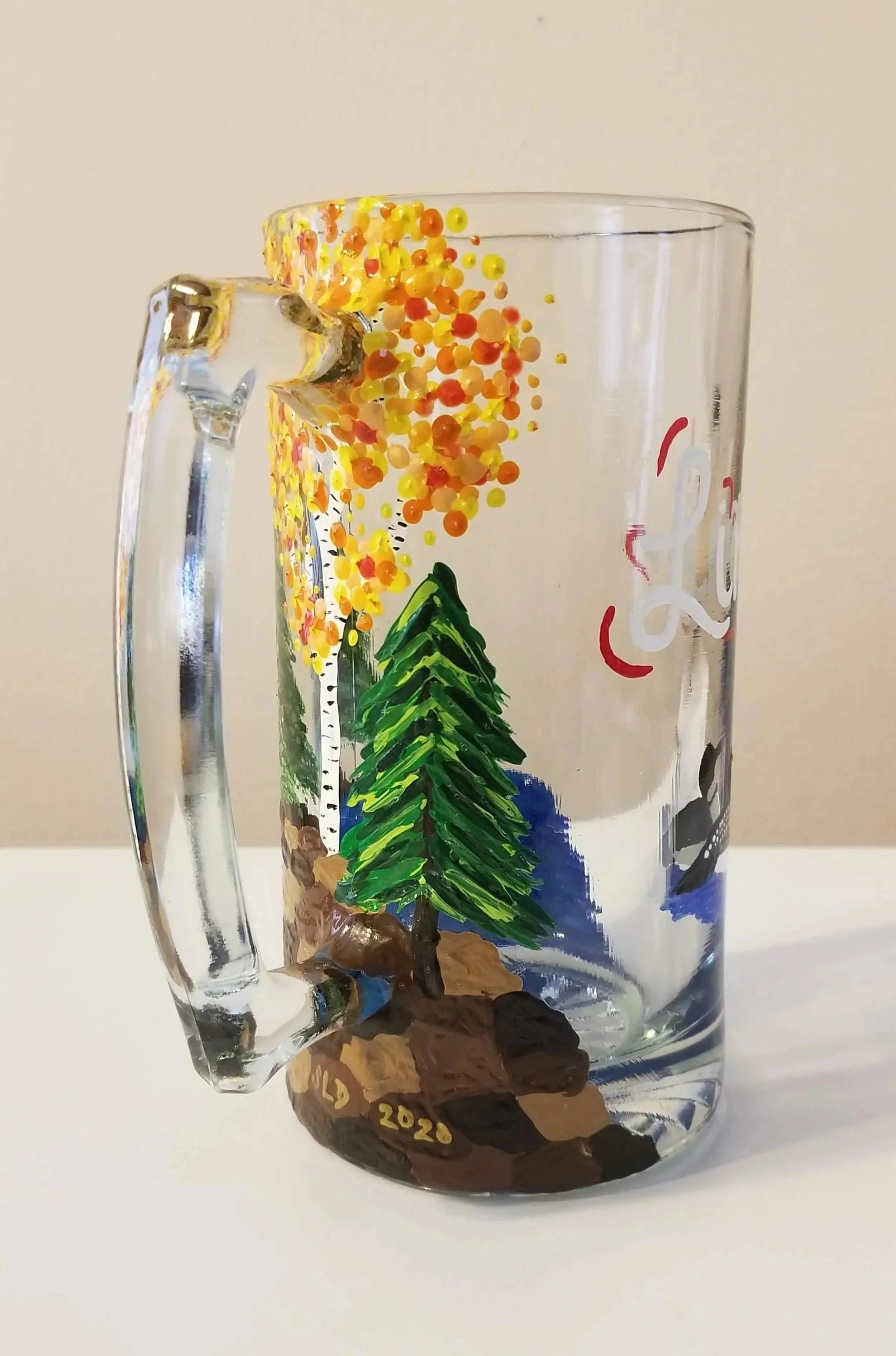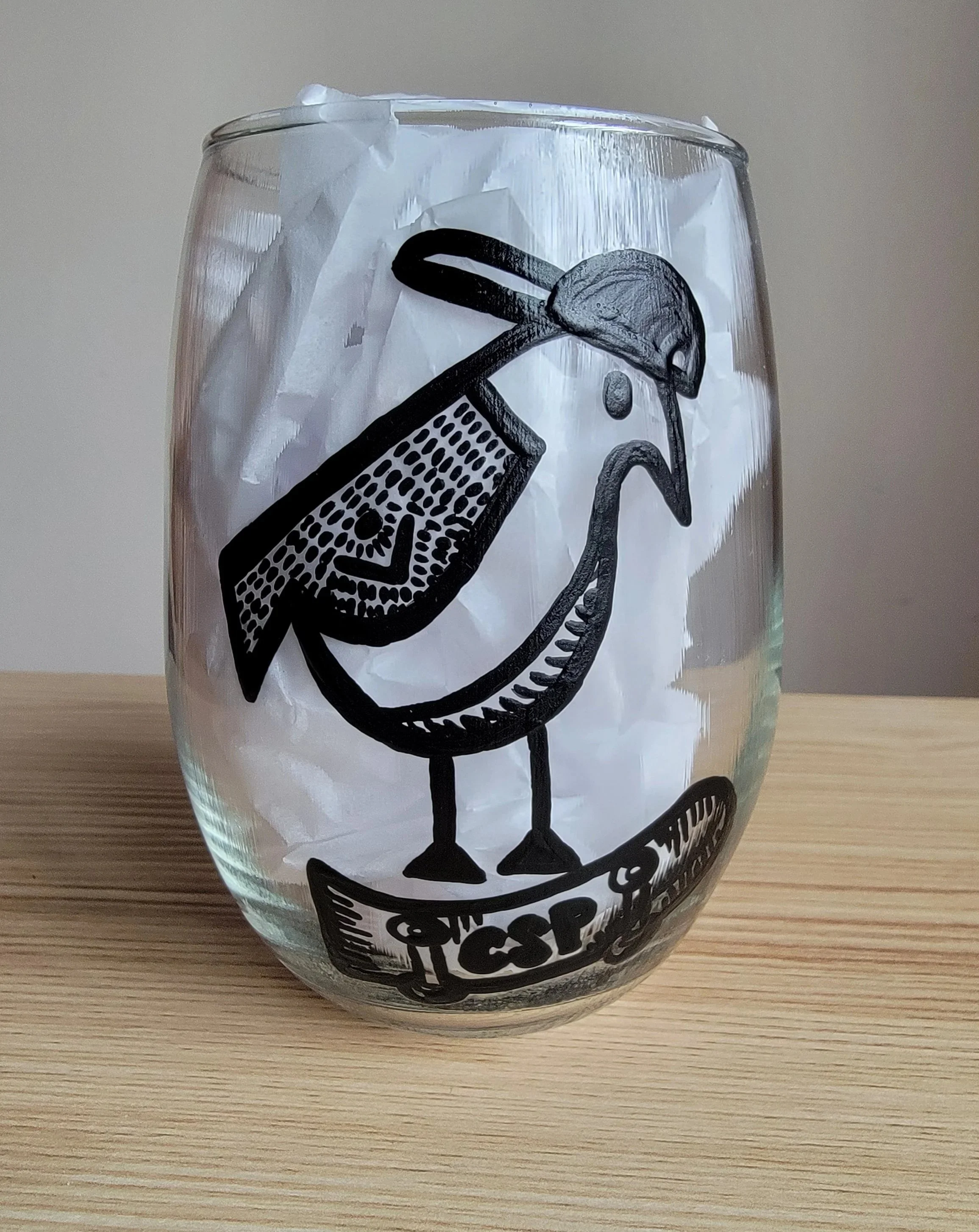 My very first art form love was painting. I’ve messed around with different types of painting mediums for as long as I can remember. My first year of college was at art school (New Hampshire Institute of Art) and I took as many painting related courses as I could get my hands on. I found joy in painting, but knew I would never make a career out of it… it was more of a therapeutic activity for me. While messing around with different mediums and surfaces to explore, I fell in love with painting on glass. This is where Stemware By Starsea was born. This was my first real side-hustle/passion project. It started out as just doing pieces for fun, which turned into making pieces for gifts, and suddenly I was getting special requests and orders from friends + family. I maintained this as a side thing + passion outlet for a long time. Then when I moved to MN, there were art fairs everywhere! This got me inspired + truly invigorated to make Stemware By Starsea a bigger thing, that I could take on the road + do pop-up art fairs with. I built up a ton of inventory + over time accumulated all of the things I would need to create an art fair booth set-up. When I finally had all the pieces to the puzzle figured out + was ready for my first art fair, COVID happened. The world shut down, and just like that there were no more art fairs, for a while. What was a fun + exciting dream for a bit turned into a bit of a headache with so many supplies + a bunch of inventory taking up space in my apartment. Fast-forward, I moved back to NH, and bubble wrapping all of those pieces for safe transport was also a nightmare! BUT, the good news was that each piece made it back home safely with me. Since then, I have done a few art fair pop-ups, but just here and there and very few + far between. This is by no means a business model I’d dive into fully, but it does bring me joy to still have this creative outlet + share that with others on occasion. Over the years, I have gotten better with my techniques + overall process for baking + sealing the work for longevity. I have also improved my design quality and imagery placement. I have done a couple commission pieces to replicate other peoples artwork onto glassware, and I have done brand collaborations to help raise money for good causes in the community! Below are some examples of my personal creative pieces, gift orders, commissioned pieces, business partnership pieces, + fundraiser collab pieces!