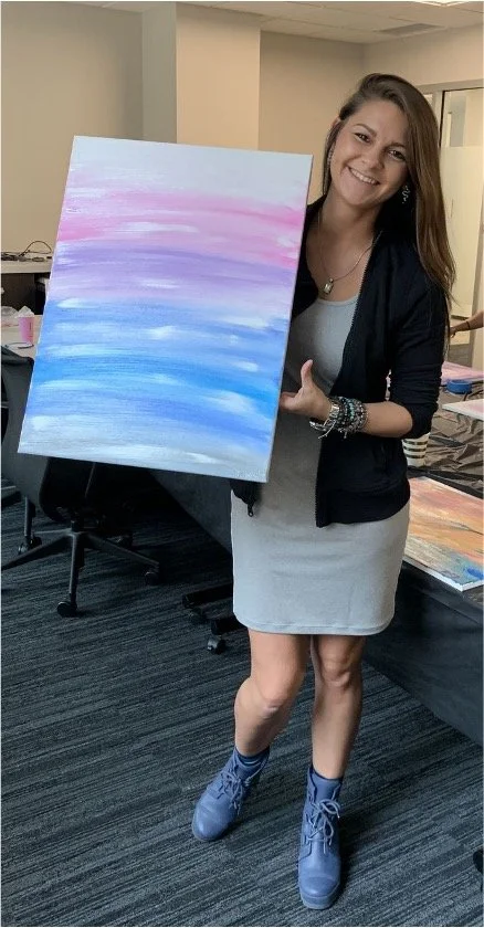 There were a couple times when I lived in MN that I was able to do just that. The first was just a simple art instillation at The Crisis Nursery. They wanted some calming art pieces made to add into their Relaxation Room for the families they serve. This room is a safe space for calm energy to help families going through distress. The criteria was simple, calming wall art that tied back to the cool colors of the room. The second was a bit more complex of a project. This one was a full-on build-out taking over an entire entryway to the business. Sheridan Story, now known as Every Meal, is a company that provides food for school children who need it the most. Their mission is to pull together balanced meal items + non-perishables into kits that are then hand delivered to kids at school, and stealthily put into lockers when no other students are around. This allows the kids in need to get the essential nutrients they should have access to, without the unwanted judgement or potential embarrassment of their peers knowing their family is going through a hard time. The ask here was the re-design the entryway to their facility to be more joyful, welcoming, have a designated home for the brochures + pamphlets, and to give a space for recognition to callout each of the schools they service in the community. For this project it was a team effort with a handful of volunteers from Target. However, I was able to be the lead on this project and I came up with the concept, sketched out the idea, painted a mock up of the wall installation, and even created a 2D art piece of how we could add dimension into the wall art. Below are images of both projects!