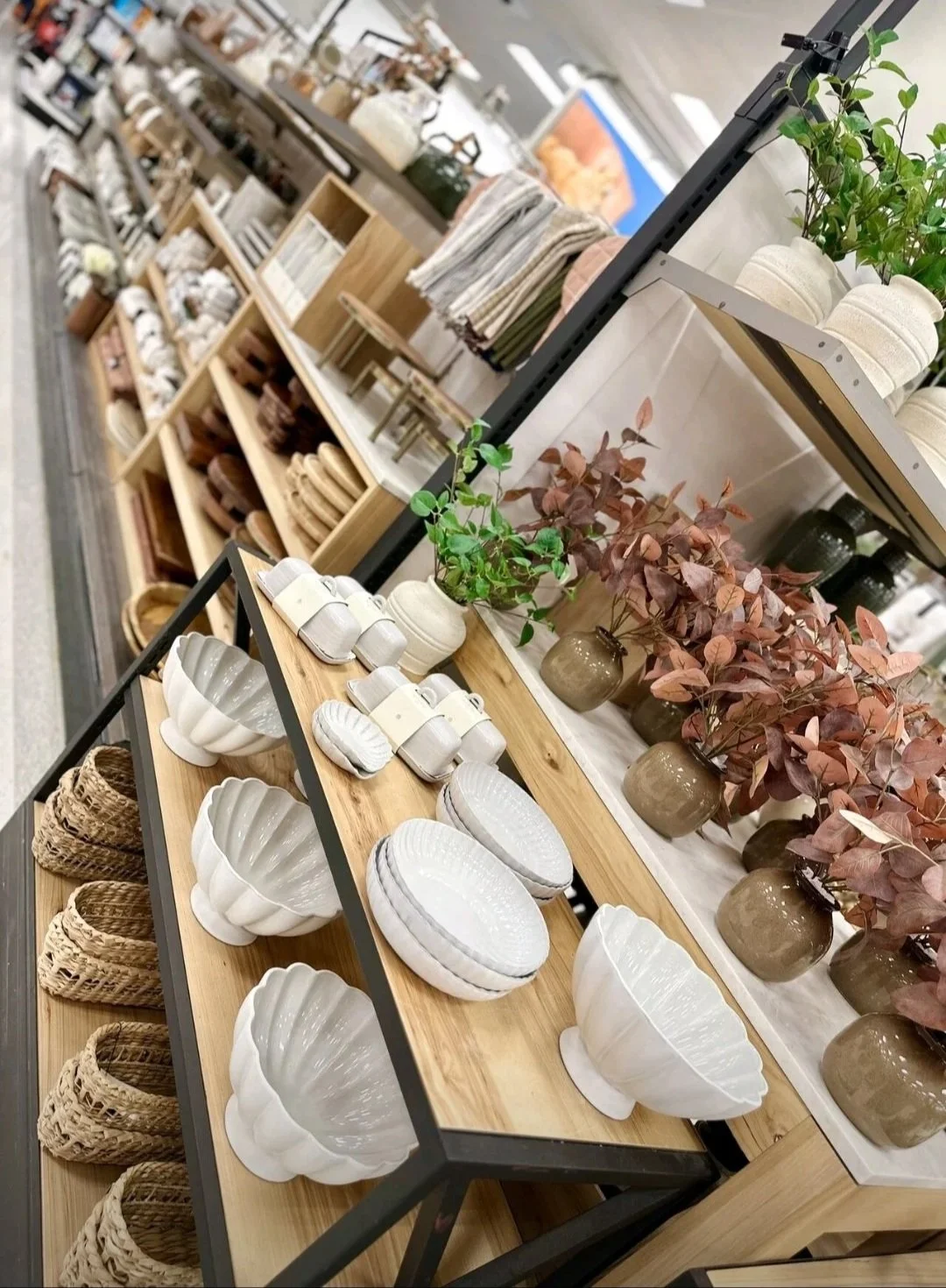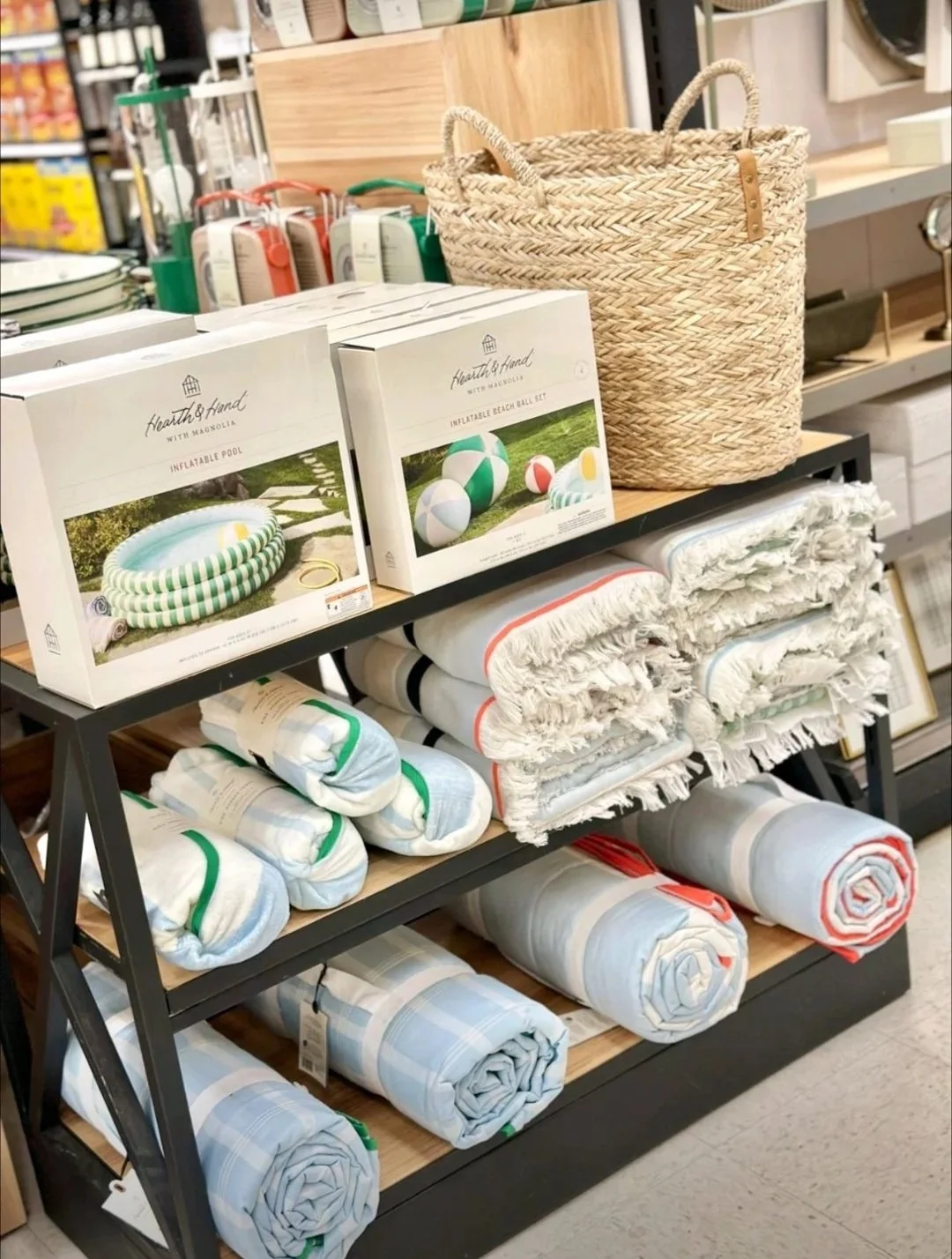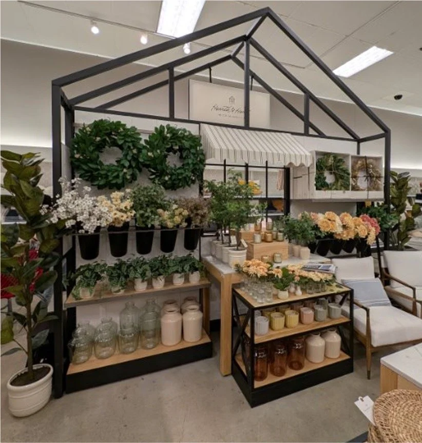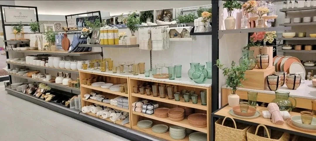In 2023, when I was promoted from Visual Merchandising Business Partner to Visual Merchandising Manager, my category ownership shifted slightly. I became the Manager over our main Home Decor partnership brand: Hearth + Hand with Magnolia, a partnership with Joanna + Chip Gaines. This space in a Target store is its own floorpad, similar to how the HI Flat is structured, however it has its own unique fixtures, hardware, + fixture accessories to leverage. In addition, the Visual Merchandising in this space leans more heavily curated + the merchandising techniques used to set the space need to be intentional + differentiated from those of the HI Flat for bold brand recognition + distinct styling differences across brands. Managing a space I hadn’t been the visual merchandiser in prior was a nice new challenge, as I had to learn the brand, partnerships, celebrity nuanced preferences, + manage a business new to me. However, managing a space that I hadn’t merchandised in prior was also a blessing because it allowed me to come in with fresh eyes, challenge the status quo of what had been done in the space prior, + propose new ideas to keep the space innovative + fresh. I also had the benefit of working on the HI Flat prior + was well-versed in the brand expectations and merchandising techniques being leveraged over there, which helped ensure the progress made in Hearth + Hand would remain differentiated + unique to the space. During my time Managing Hearth + Hand, we integrated a handful of brand partnerships into the space, inclusive of: KitchenAid, Stanley, Owala, Haden, + more! We also launched a Hearth + Hand packaged food + giftable food line: Magnolia Table, that was then cross-merchandised within the space to amplify further storytelling + build-the-basket even more!